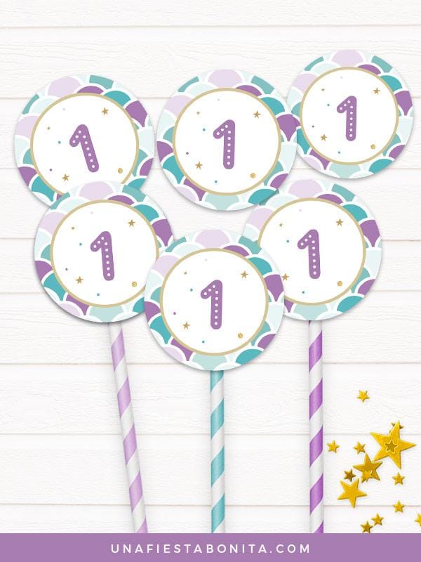 toppers para cupcakes sirenita